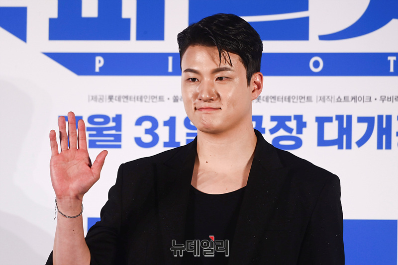 배우 신승호가 26일 오전 서울 광진구 롯데시네마 건대입구점에서 열린 영화 '파일럿(감독 김한결)' 제작보고회에서 포즈를 취하고 있다.