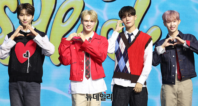 보컬그룹 비디유(B.D.U)가 26일 오전 서울 서대문구 신촌 예스24 워더로크홀에서 열린 첫 번째 미니앨범 'Wishpool(위시풀)' 쇼케이스에서 포즈를 취하고 있다.