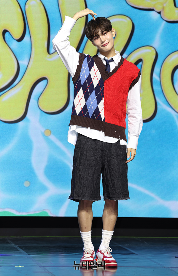 보컬아이돌 비디유(B.D.U) 승훈이 26일 오후 서울 서대문구 신촌 예스24 워더로크홀에서 열린 첫 번째 미니앨범 'Wishpool(위시풀)' 쇼케이스에서 포즈를 취하고 있다.