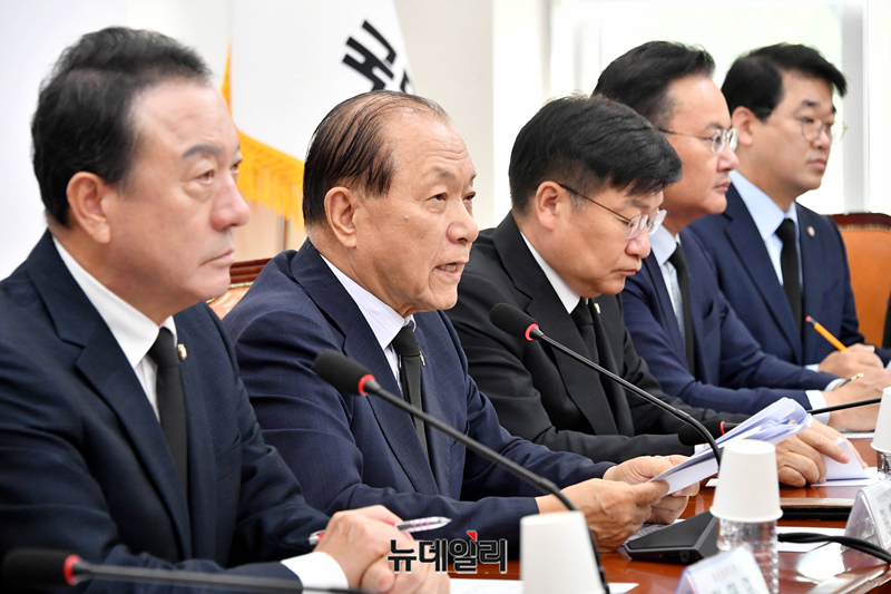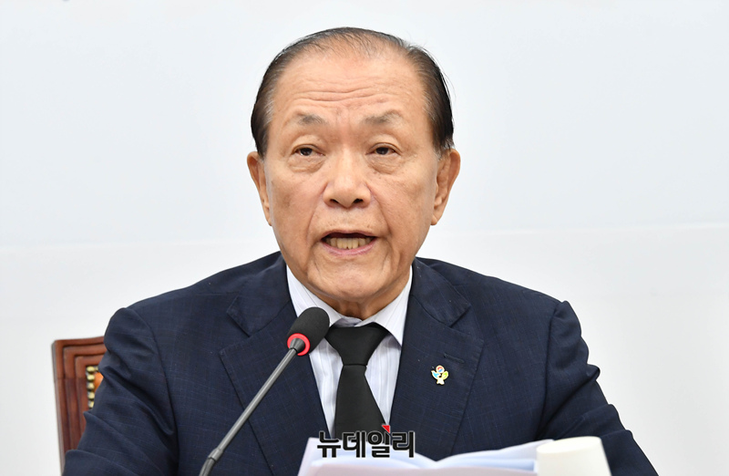 황우여 국민의힘 비상대책위원장이 27일 오전 국회에서 열린 비상대책위원회의에서 모두발언을 하고 있다.