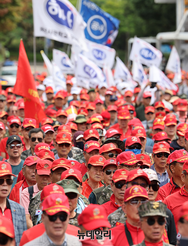 [포토] '해병대 특검 반대' 국회 앞에 모인 해병대 예비역