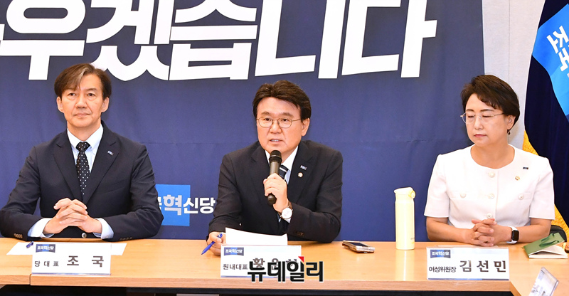 황운하 조국혁신당 원내대표가 28일 오전 국회에서 열린 최고위원회의에서 모두발언을 하고 있다.