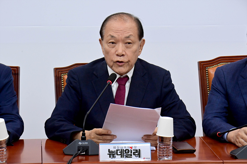 황우여 국민의힘 비상대책위원장이 1일 오전 국회에서 열린 비상대책위원회의에서 발언하고 있다.