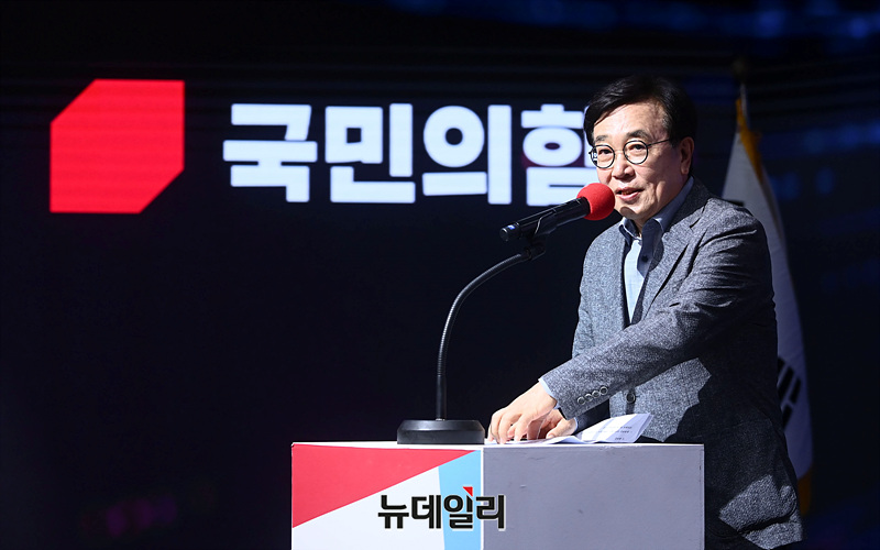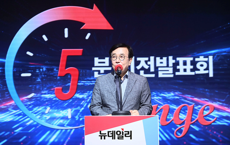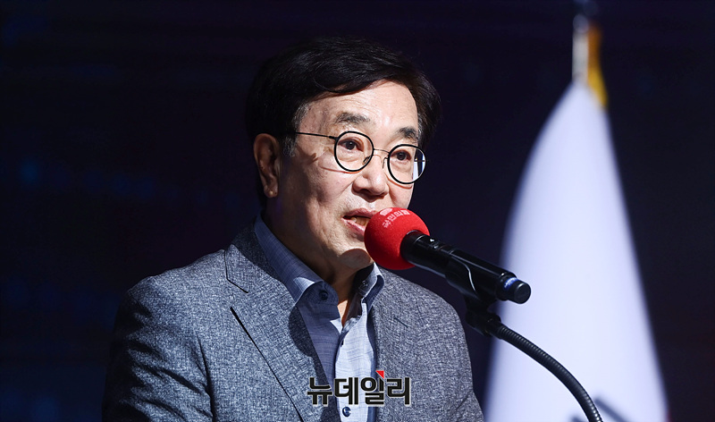 서병수 국민의힘 선거관리위원장이 2일 오전 서울 강서구 ASSA아트홀에서 열린 '체인지 5분 비전발표회'에서 인사말을 하고 있다.