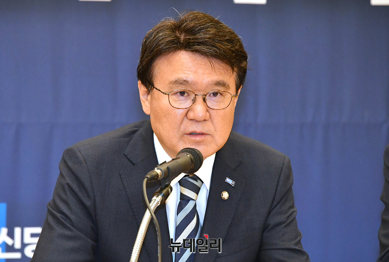 황운하 조국혁신당 원내대표가 2일 오전 국회에서 열린 의원총회에 모두발언을 하고 있다.