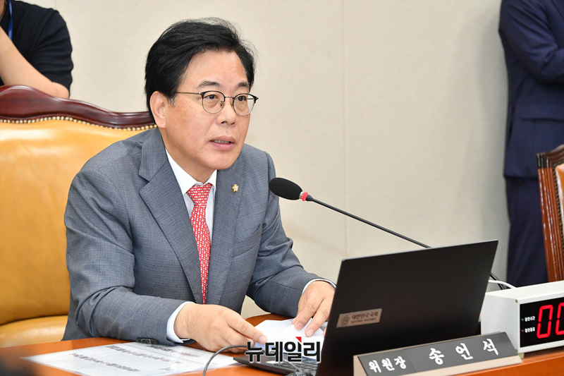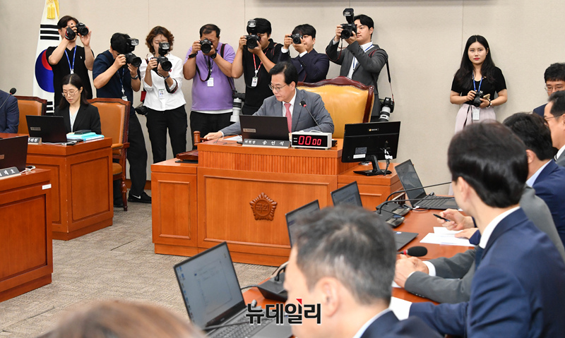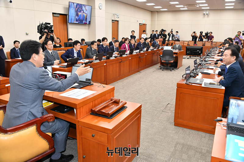 송언석 국회 기획재정위원장이 2일 오전 국회에서 기획재정위원회 첫 전체회의를 주재하고 있다.