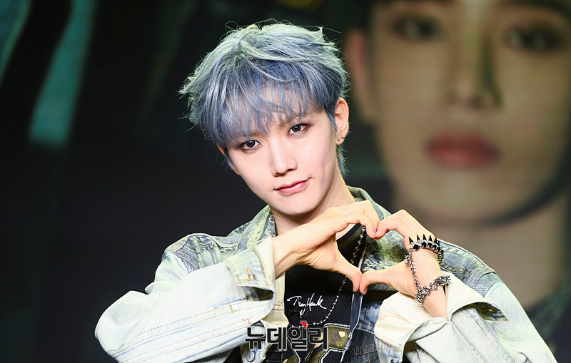 그룹 올아워즈(ALL(H)OURS) 현빈이 2일 오후 서울 강남구 일지아트홀에서 열린 두 번째 미니앨범 '위트니스(WITNESS)' 쇼케이스에서 포즈를 취하고 있다.