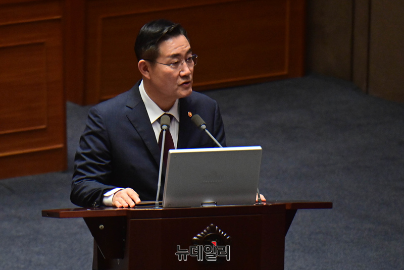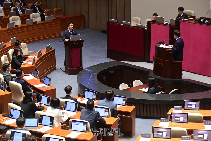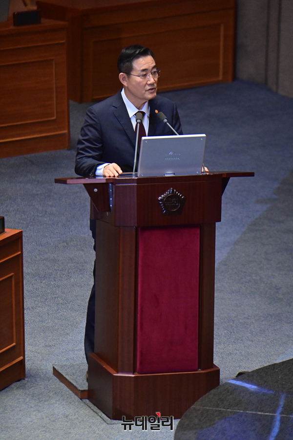 신원식 국방부 장관이 2일 오후 국회 본회의 대정부질문에서 의원들의 질문에 답하고 있다.