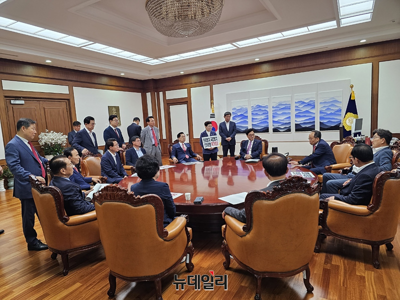 추경호 국민의힘 원내대표가 2일 오후 국회의장실을 항의 방문해 우원식 국회의장과 면담을 하고 있다. 국민의힘은 '채상병 특검법' 국회 본회의 상정에 반발해 국회의장실을 항의 방문했다. (사진=국민의힘)