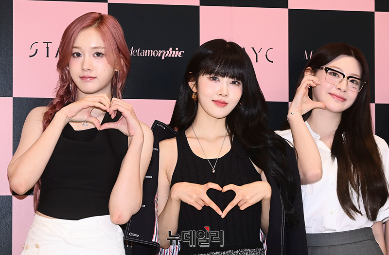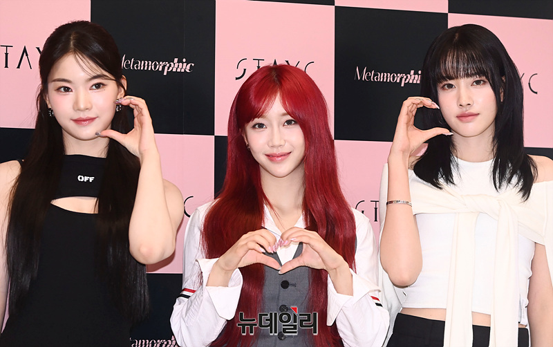 걸그룹 스테이씨가 2일 오후 서울 성동구 카페 쎈느(Scene)에서 열린 정규 1집 '메타모르픽(Metamorphic)' 발매 기념 팝업 스페이스에서 포즈를 취하고 있다.