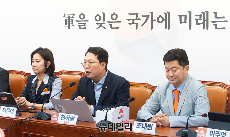 천하람 개혁신당 원내대표가 3일 오전 서울 여의도 국회에서 열린 최고위원회의에서 모두발언을 하고 있다.