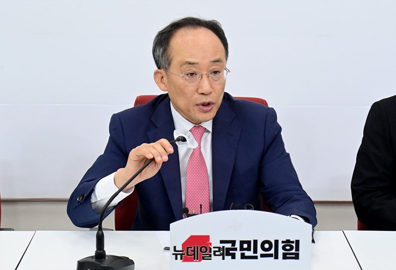 추경호 국민의힘 원내대표가 3일 오전 국회에서 현안 관련 기자간담회를 갖고 기자들의 질문에 답하고 있다.