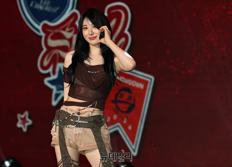 가수 이채연이 3일 오후 서울 강남구 일지아트홀에서 열린 미니 3집 앨범 'SHOWDOWN' 쇼케이스에서 포즈를 취하고 있다.