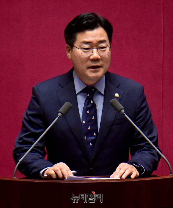 박찬대 더불어민주당 당 대표 직무대행 겸 원내대표가 3일 오후 국회 본회의에서 김병주 민주당 의원의 막말 논란에 대해 유감을 표하고 있다.