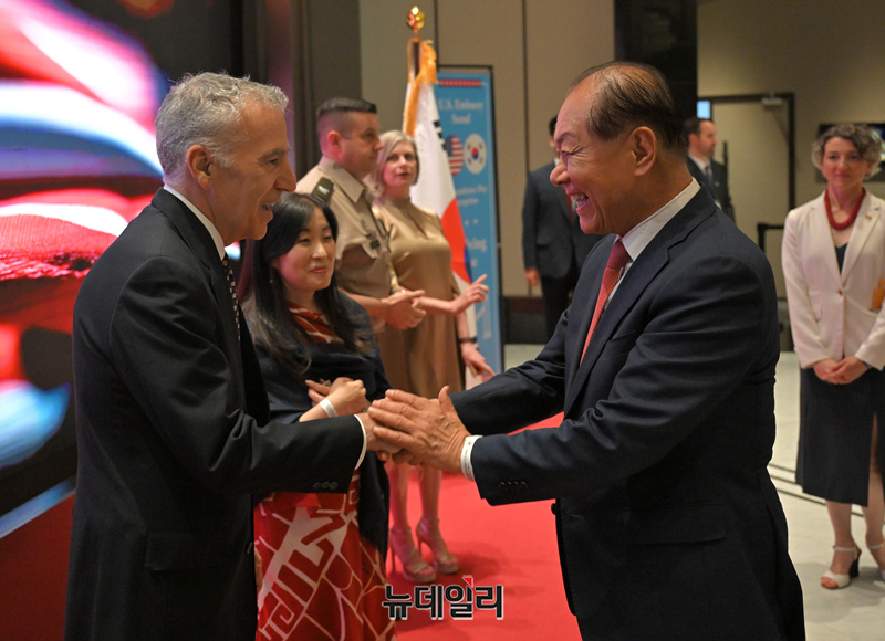 • 필립 골드버그 주한 미국대사와 황우여 국민의힘 비상대책위원장이 3일 오후 서울 용산구 그랜드 하얏트 서울에서 열린 미국 독립기념일 행사에서 인사를 나누고 있다. (사진=공동취재단)
