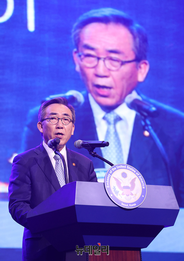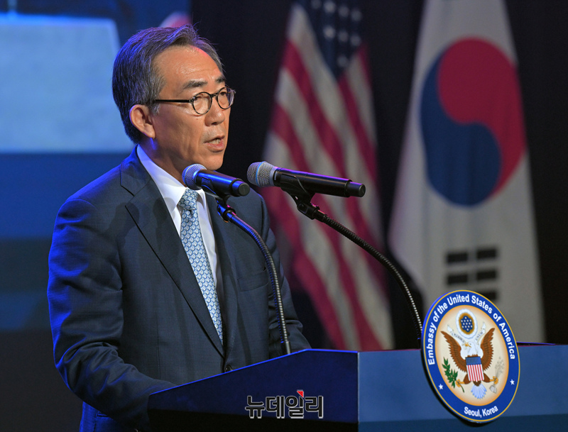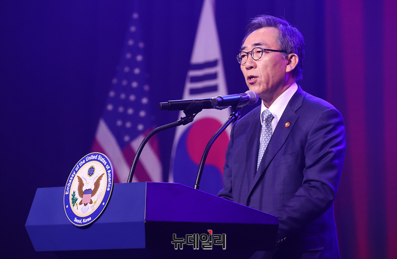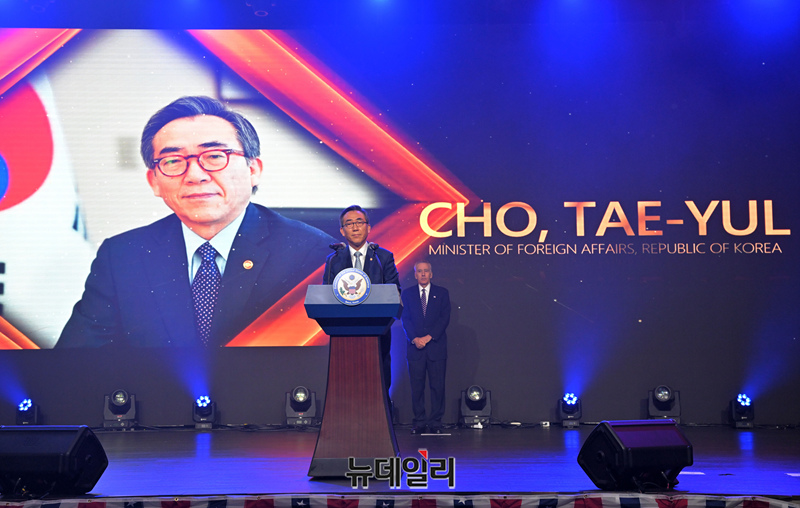 조태열 외교부 장관이 3일 오후 서울 용산 그랜드 하얏트 호텔 그랜드 볼룸에서 열린 미국 독립기념일 행사에서 축사하고 있다. (사진=공동취재단)