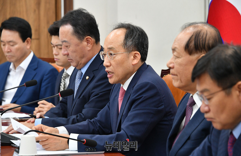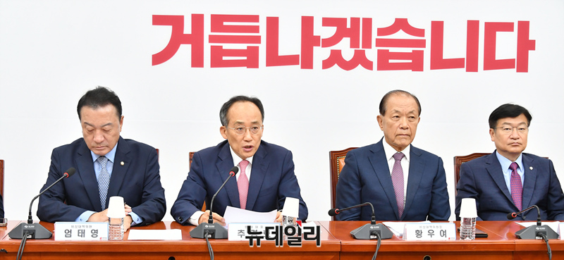 이날 추 원내대표는 우원식 국회의장에게 "우 의장이 어제 채상병 특검법안을 상정하면서 이 법안이 통과되기를 바라며 대통령이 재의요구권을 행사하지 않기를 바란다는 본인의 뜻을 피력했다"며 "의장으로서 중립 의무를 정면으로 위반한 것"이라고 말했다.