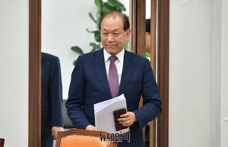 • 황우여 국민의힘 비상대책위원장, 추경호 원내대표, 정점식 정책위의장이 4일 오전 국회에서 열린 비상대책위원회의에 참석하고 있다.
