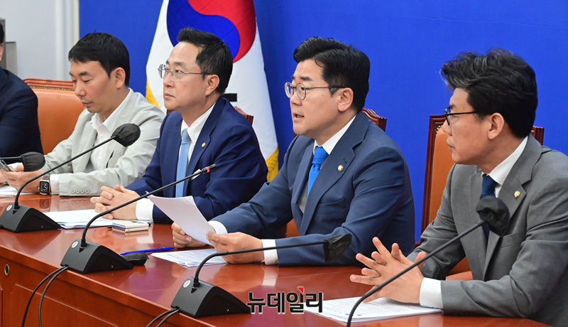 박찬대 더불어민주당 당대표 직무대행 겸 원내대표가 4일 국회에서 열린 정책조정회의에서 모두발언을 하고 있다.