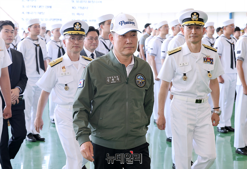 신원식 국방부 장관이 4일 오전 경북 포항시 해군항공사령부에서 열린 '해상초계기(P-8A) 국내 인수식'에 참석하고 있다. (사진=공동취재단)