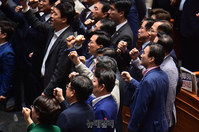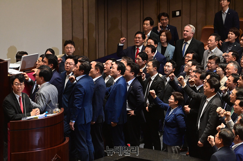 [포토] 필리버스터 강제 종결, 항의하는 국민의힘