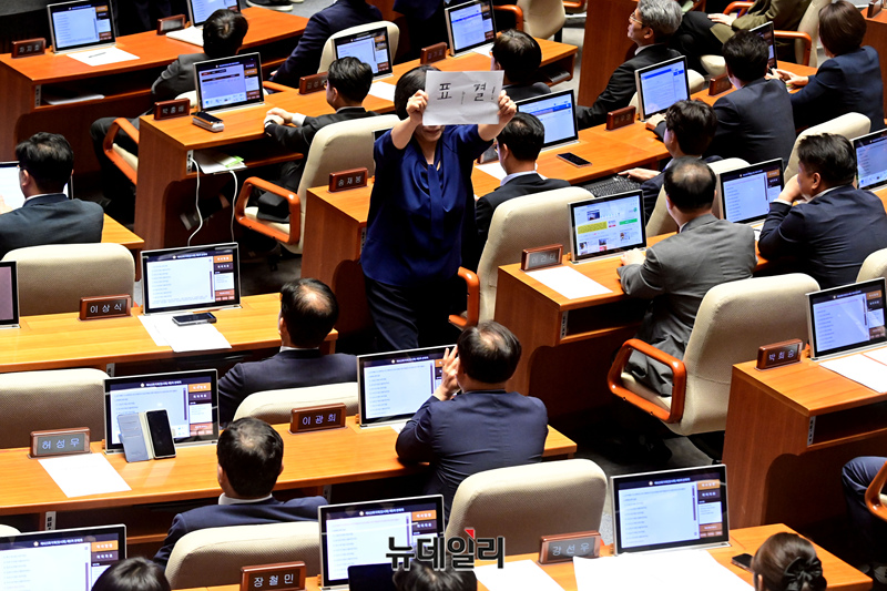 [포토] 표결 피켓들고 본회의장 도는 최민희
