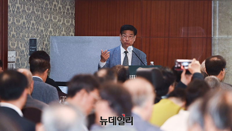 양준모 이승만연구원 원장이 4일 오후 서울 중구 코리아나호텔에서 열린 '대한민국 발전과 건국전쟁' 세미나에서 발표를 하고 있다.