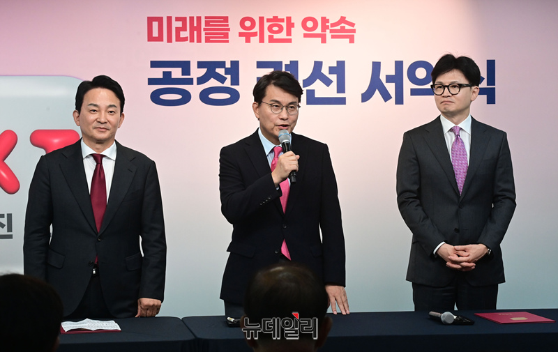 국민의힘 윤상현 당대표 후보가 5일 오후 서울 여의도 중앙당사에서 열린 '미래를 위한 약속, 공정 경선 서약식'에서 발언을 하고 있다.