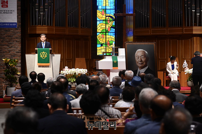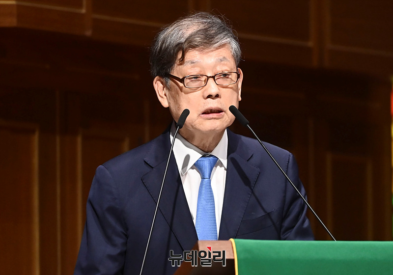 41대 국무총리를 지낸 김황식 이승만대통령 기념재단 이사장이 5일 오후 서울 중구 정동교회에서 '이승만과 대한민국'을 주제로 열린 한미우남포럼에서 축사를 하고 있다.이날 1부 행사는 최재형 트러스트포럼 대표의 개회선언을 시작으로 김남수 이승만건국대통령기념사업회 회장이 대회사를, 김영기 조지워싱턴대 명예교수, 데이빗 필즈 위스콘신대 교수, 오영섭 독립기념관 이사, 이택선 명지대 교수, 원성웅 목사가 발표에 나섰다.이어진 2부 행사는 김황식 이승만대통령 기념재단 이사장, 정운찬 상임고문대표, 김충환 해공신익희선생기념사업회 회장, 원로 연기자 최불암이 각각 축사했다.