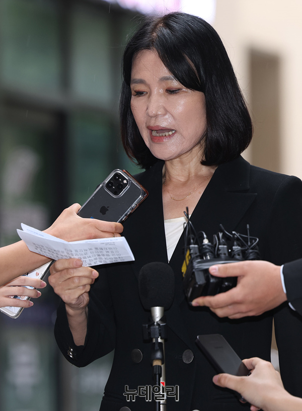 이진숙 방송통신위원장 후보자가 8일 오전 인사청문회 준비 사무실이 마련된 경기 과천시의 한 사무실로 첫 출근하며 준비한 입장문을 발표하고 있다. (경기 과천=정상윤 기자)