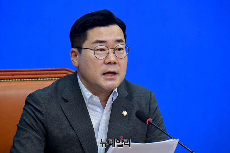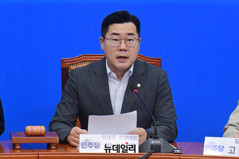 박찬대 더불어민주당 당대표 직무대행 겸 원내대표가 8일 국회에서 열린 최고위원회의에서 모두발언을 하고 있다.