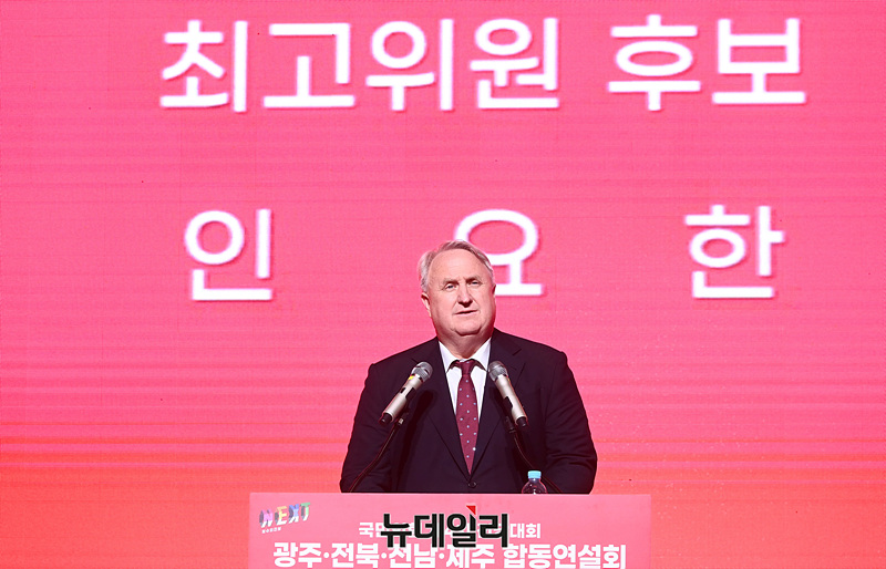 인요한 국민의힘 최고위원 후보가 8일 오후 광주 서구 김대중컨벤션센터에서 열린 '제4차 전당대회 광주·전북·전남·제주 합동 연설회'에서 정견발표를 하고 있다. (광주=서성진 기자)
