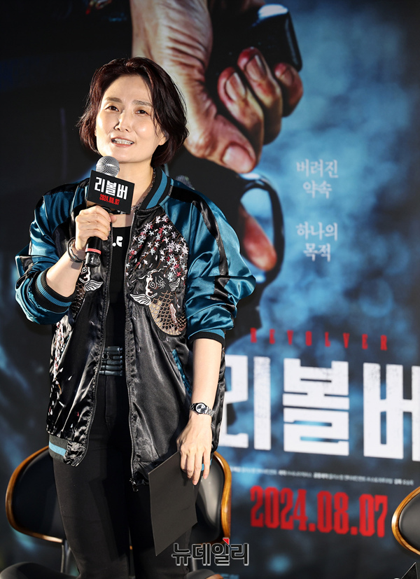 방송인 박경림이 9일 오전 서울 강남구 메가박스 코엑스에서 열린 영화 '리볼버(연출 오승욱)' 제작보고회에서 작품소개를 하고 있다.'리볼버'는 모든 죄를 뒤집어쓰고 교도소에 들어갔던 전직 경찰 ‘수영(전도연)’이 출소 후 오직 하나의 목적을 향해 직진하는 이야기를 그린 영화.영화 '무뢰한'으로 칸영화제 ‘주목할 만한 시선’에 초청된 오승욱 감독과 영화 신세계, 아수라의 사나이픽처스가 손을 잡은 작품이다. 배우 전도연, 지창욱, 임지연 등이 출연한다. 8월 7일 극장 개봉.