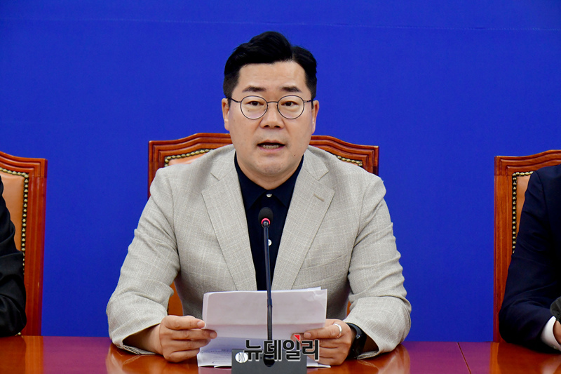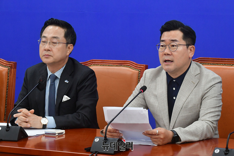 박찬대 더불어민주당 당대표 직무대행 겸 원내대표가 9일 국회에서 열린 원내대책회의에서 모두발언을 하고 있다.