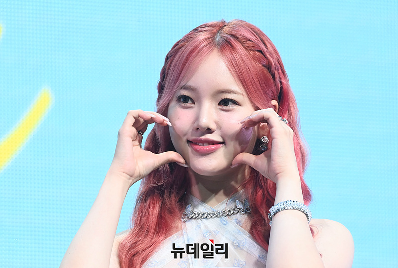 걸그룹 위클리 이수진이 9일 오후 서울 마포구 신한 SOL 페이 스퀘어에서 열린 미니6집 '블리스(Bliss)' 발매 기념 쇼케이스에서 포즈를 취하고 있다.