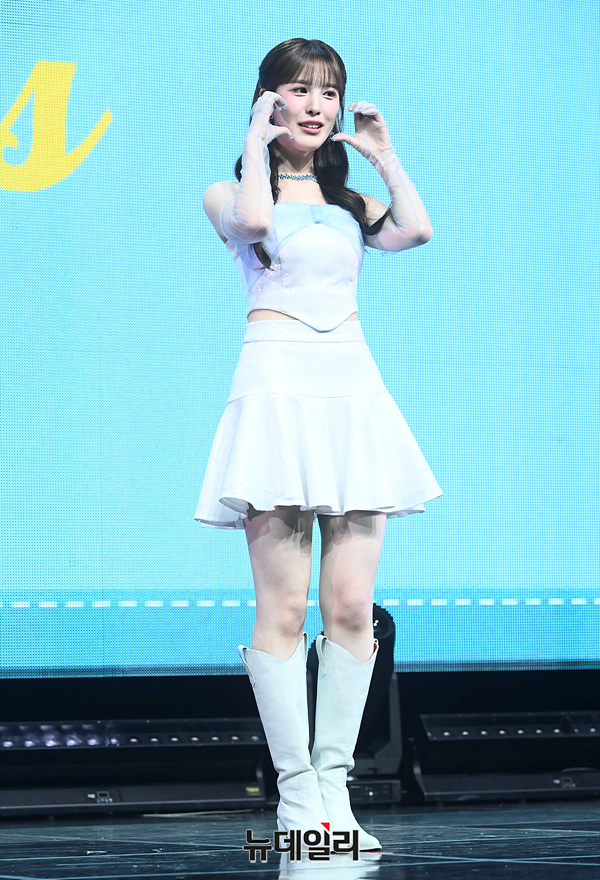 걸그룹 위클리 이재희가 9일 오후 서울 마포구 신한 SOL 페이 스퀘어에서 열린 미니6집 '블리스(Bliss)' 발매 기념 쇼케이스에서 포즈를 취하고 있다.