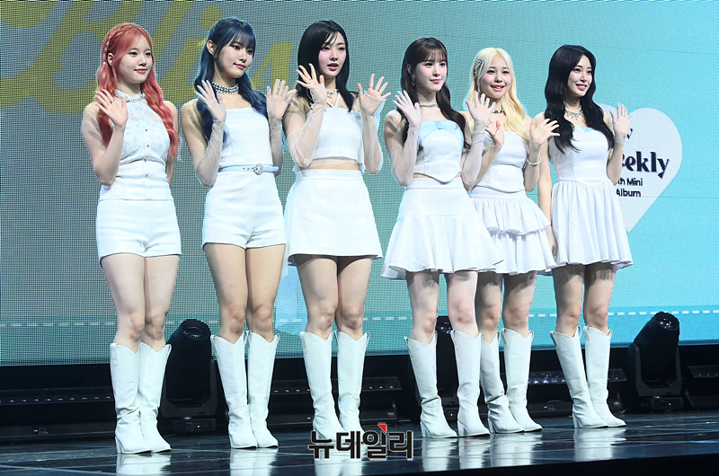 걸그룹 위클리 이수진(왼쪽부터), 먼데이, 박소은, 이재희, 지한, 조아가 9일 오후 서울 마포구 신한 SOL 페이 스퀘어에서 열린 미니6집 '블리스(Bliss)' 발매 기념 쇼케이스에서 포즈를 취하고 있다.이번 앨범은 타이틀곡 '라이츠 온(LIGHTS ON)' 을 포함해 '트웬티스(Twenties)' '댄스 댄스 댄스!(Dance Dance Dance!)' '클래식(Classic)' 'Page(내게 닿은 이야기)'까지 다섯 곡을 담았다. 음원은 오후 6시 공개.