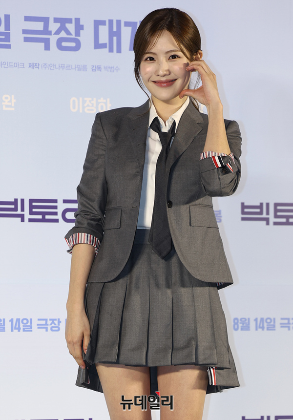 배우 조아람이 10일 오전 서울 광진구 롯데시네마 건대입구에서 열린 영화 '빅토리(연출 박범수)' 제작보고회에서 포즈를 취하고 있다.