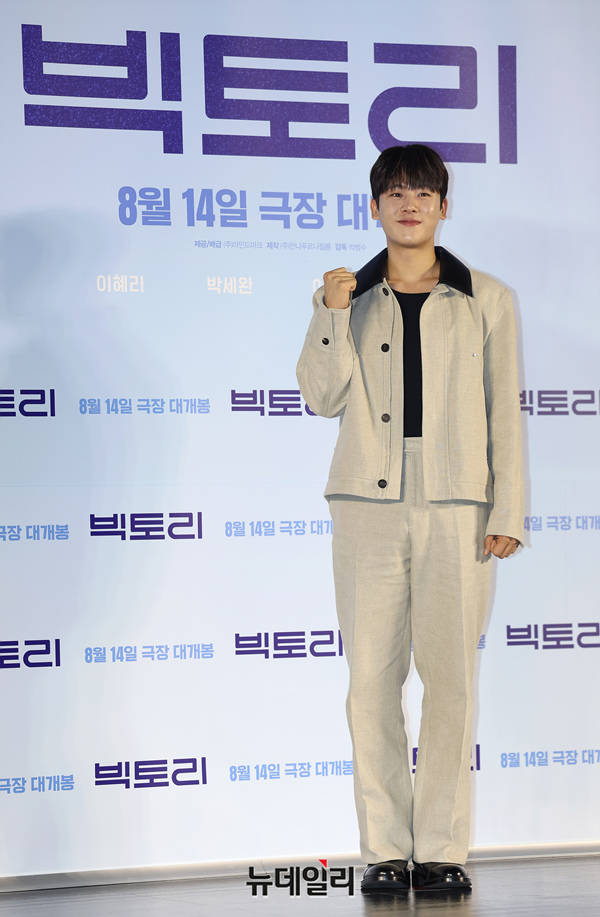 배우 이정하가 10일 오전 서울 광진구 롯데시네마 건대입구에서 열린 영화 '빅토리(연출 박범수)' 제작보고회에서 포즈를 취하고 있다.