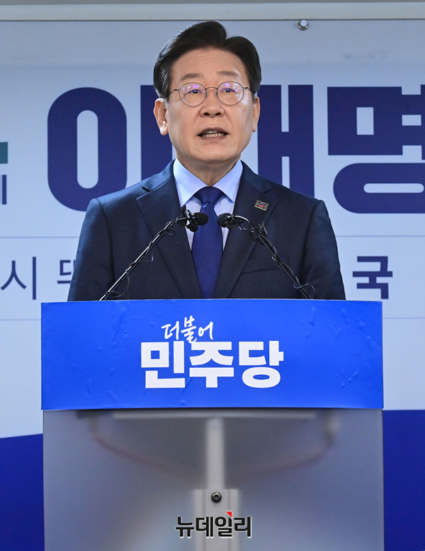 이재명 더불어민주당 전 대표가 10일 오전 서울 여의도 중앙당사에서 8·18 전당대회 당 대표 출마 선언을 하고 있다.