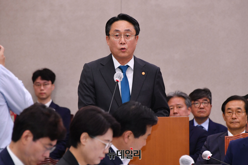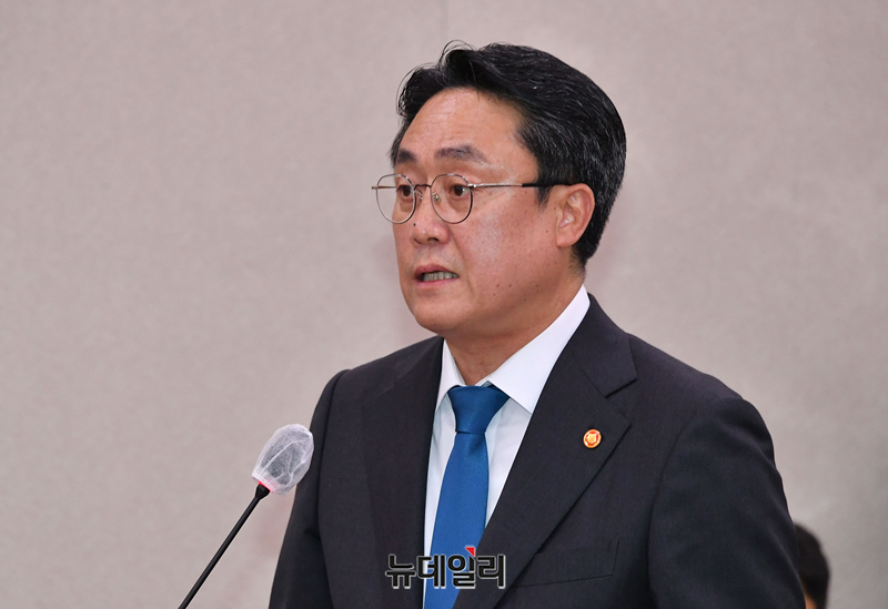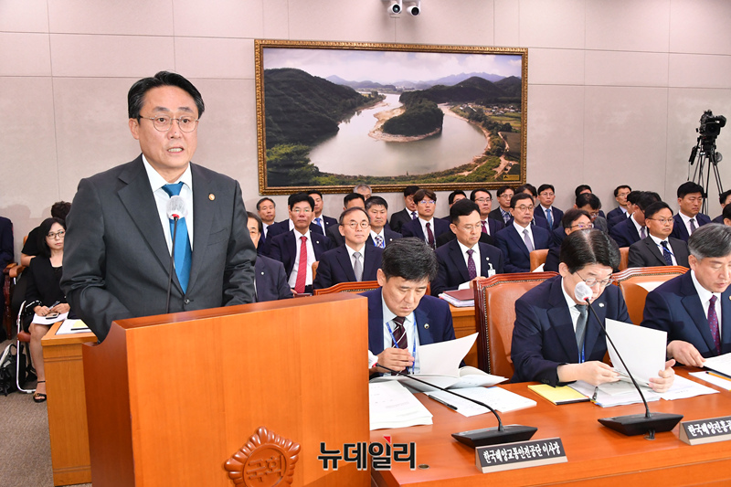 강도형 해양수산부 장관이 10일 오전 국회 농림축산식품해양수산위원회 전체회의에 참석해 업무보고를 하고 있다.