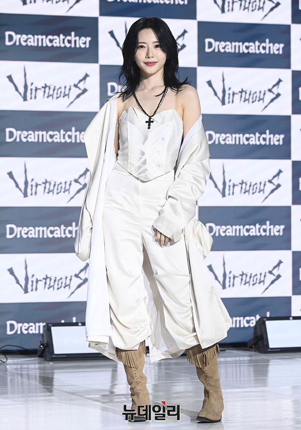 걸그룹 드림캐쳐 지유가 10일 오후 서울 강남구 일지아트홀에서 열린 미니 10집 '버추어스(VirtuouS)' 발매 기념 쇼케이스에서 포즈를 취하고 있다.