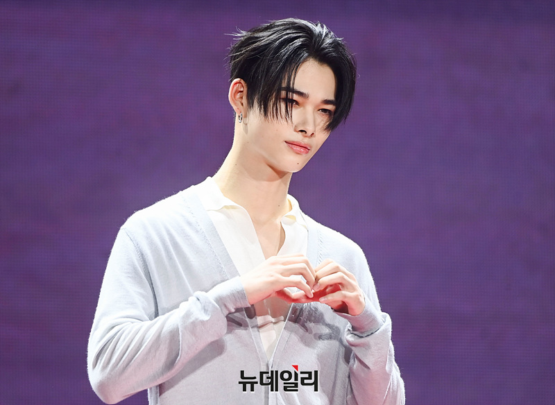 그룹 엔하이픈 니키가 11일 오후 서울 송파구 올림픽공원 핸드볼경기장에서 열린 정규 2집 '로맨스 : 언톨드(ROMANCE : UNTOLD)' 발매 기념 쇼케이스에서 포즈를 취하고 있다.