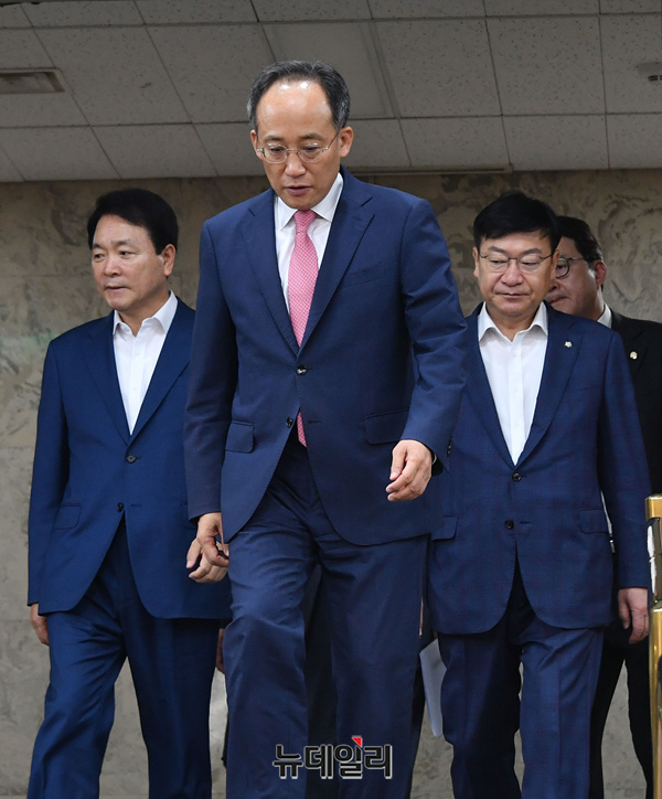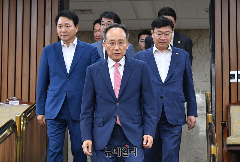 이날 추 원내대표는 노란봉투법 등 쟁점 법안을 당론으로 채택해 밀어붙이는 것을 비판하면서 "경제 망치는 무책임한 당론 입법은 지양할 것을 촉구한다"고 밝혔다.