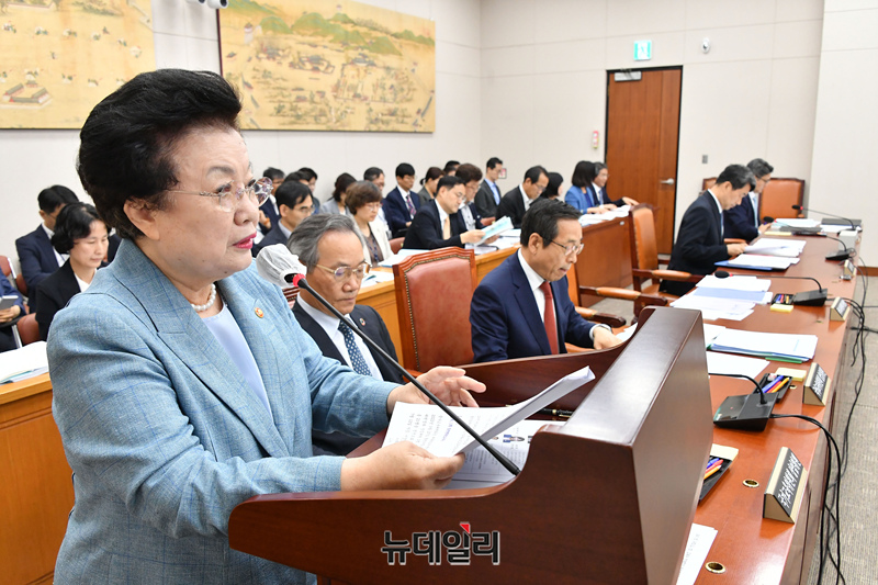 이배용 국가교육위원회 위원장이 12일 오전 국회에서 열린 교육위원회 전체회의에 출석해 업무보고를 하고 있다.