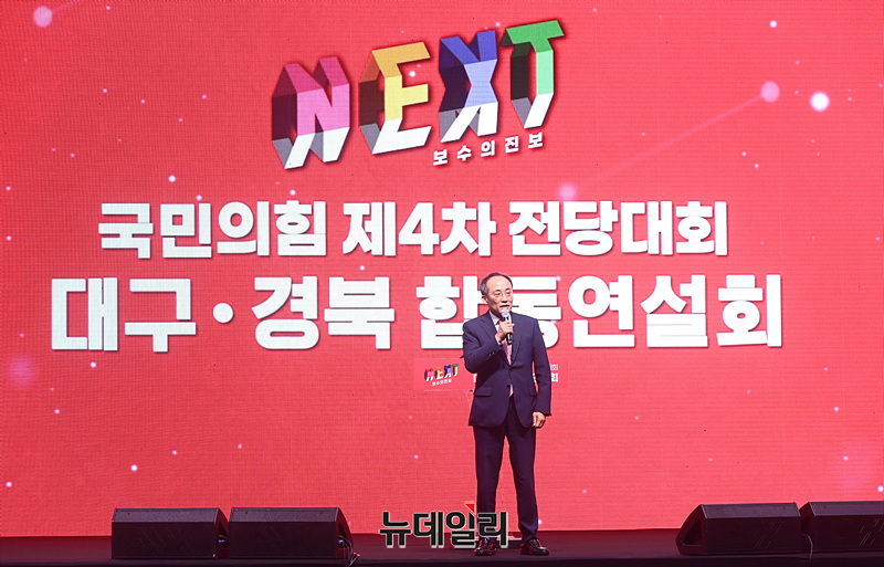 추경호 국민의힘 원내대표가 12일 오후 대구 북구 엑스코에서 열린 '제4차 전당대회 대구·경북 합동연설회'에서 인사말을 하고 있다.