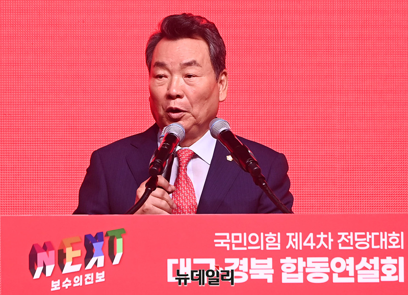 김형대 국민의힘 최고위원 후보가 12일 오후 대구 북구 엑스코에서 열린 '제4차 전당대회 대구·경북 합동연설회'에서 정견발표를 하고 있다.