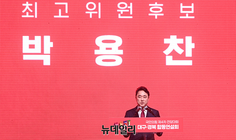 박용찬 국민의힘 최고위원 후보가 12일 오후 대구 북구 엑스코에서 열린 '제4차 전당대회 대구·경북 합동연설회'에서 정견발표를 하고 있다.