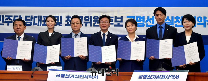[포토] 공명선거실천 서약식 갖는 민주당 최고위원 후보들