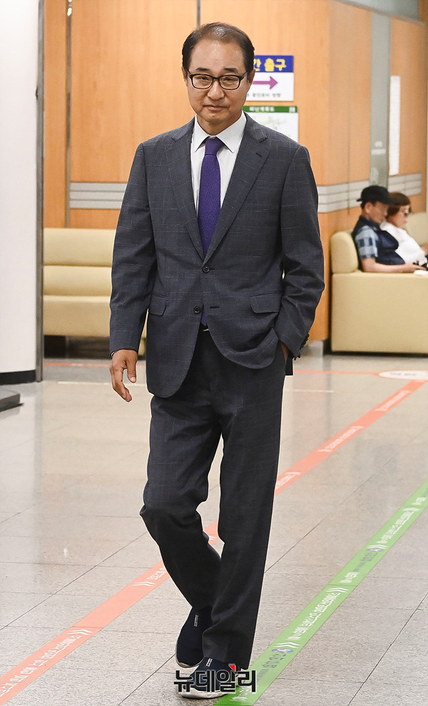 더불어민주당 전당대회 돈봉투 의혹으로 재판에 넘겨진 이성만 전 무소속 의원이 16일 오전 서울 서초구 서울중앙지방법원에서 열린 '정당법 위반 혐의' 관련 1심 속행 공판에 출석하고 있다.